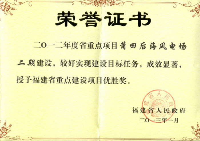 省電監(jiān)辦授予福能風(fēng)電公司...