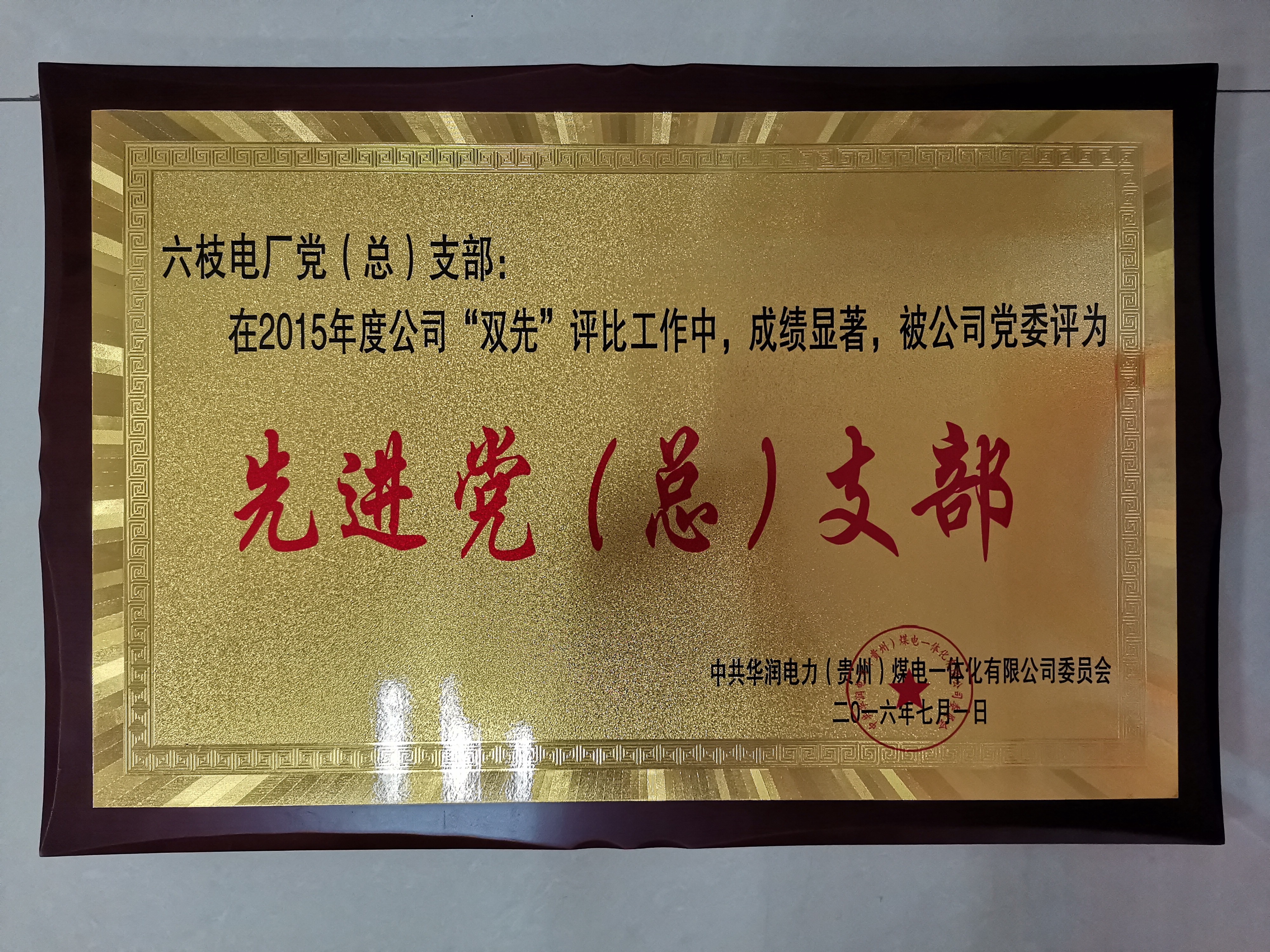 2015年獲得中共華潤電力(貴州)煤電一體化有限公司委員會頒發(fā)的“2015年度先進(jìn)黨(總)支部”