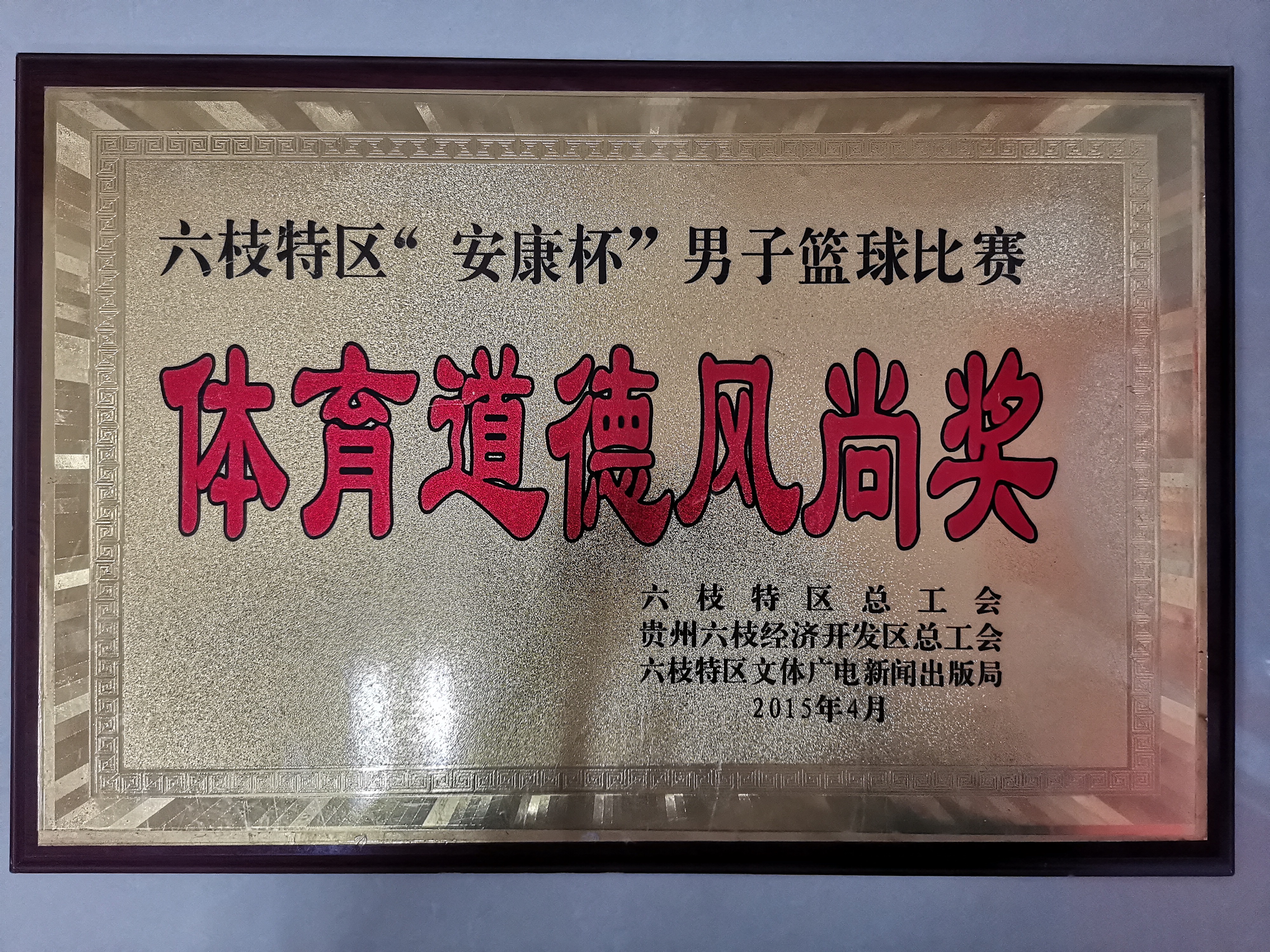 2015年獲得六枝特區(qū)總工會、六枝經(jīng)濟(jì)開發(fā)區(qū)總工會、六枝特區(qū)文體廣電新聞出版局頒發(fā)的“體育道德風(fēng)尚獎”