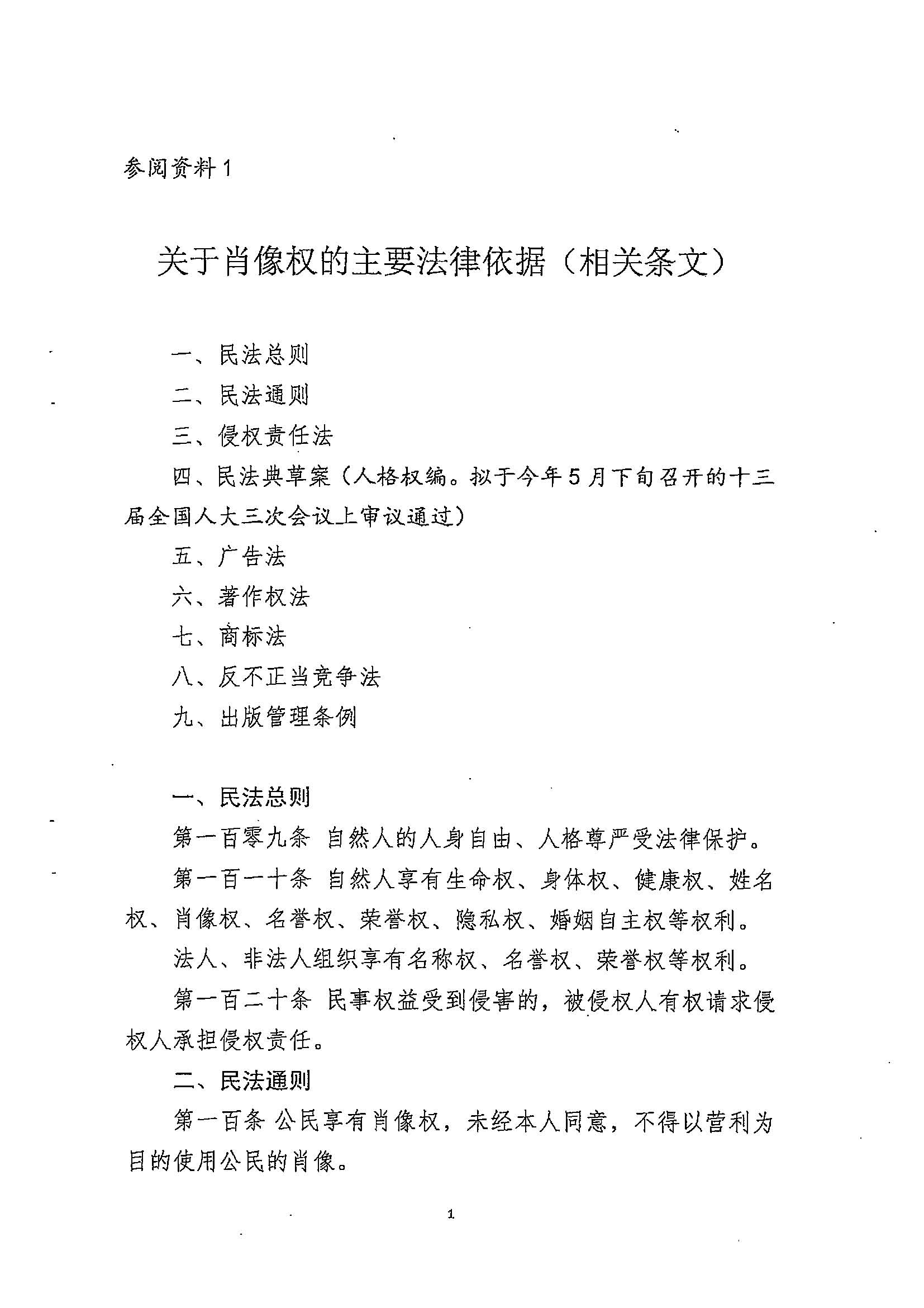關(guān)于肖像權(quán)的主要法律依據(jù)