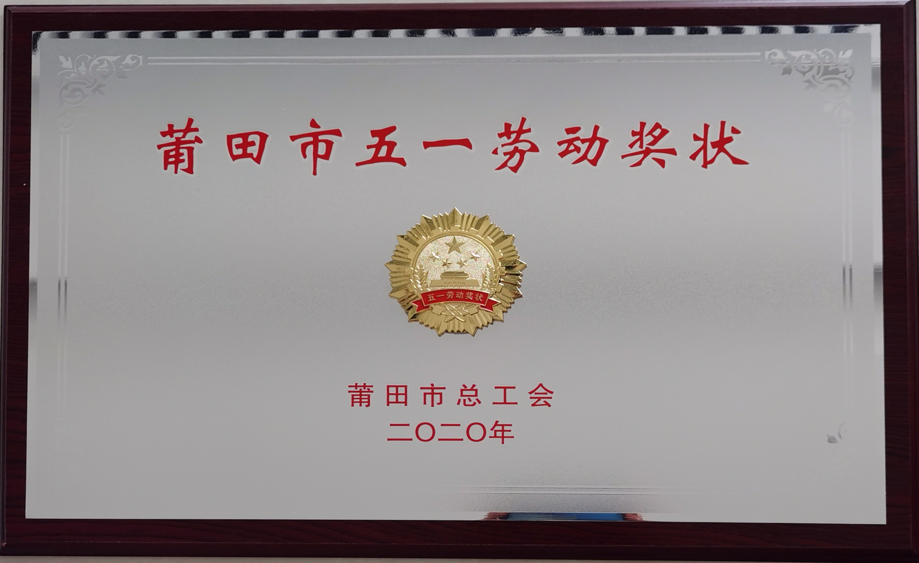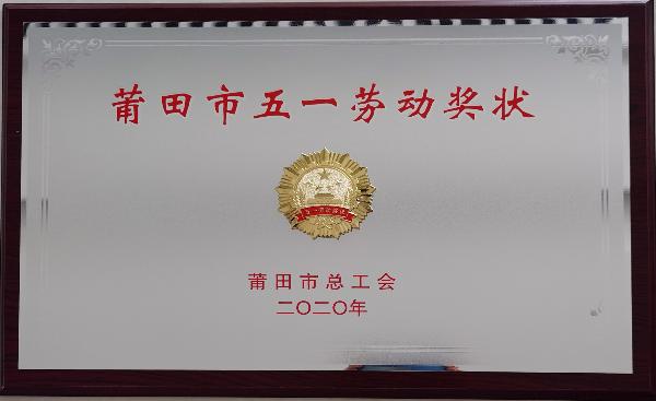 2020莆田市五一勞動獎狀
